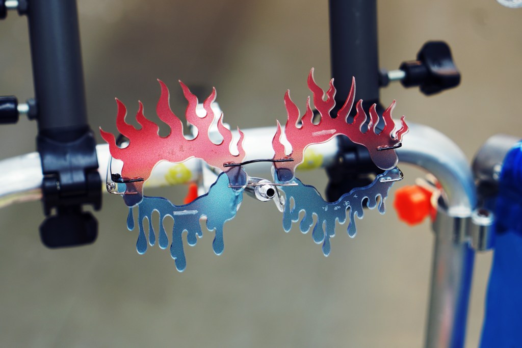 “Negative Energy Eyewear Set” is a series of facial health accessories created by Meltingwang. It includes two styles: the “Burning Eyebrows” and the “Raining Tears” (which do not possess the function of ordinary spectacles). When the product touches the human body, it will help the human to correctly confront the existing negative energy and to learn to reconcile with it.